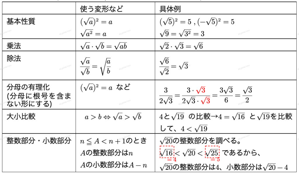 ◯平方根の計算 (以下ではa>0,b>0とし、nは整数とする。)