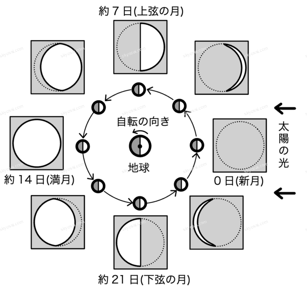 TOP > 一般教養 一覧 [教採スタンダード] > 月と太陽 参考書モード 講義モード(準備中) ◯月の運動と満ち欠け …月は地球の周りを 公転 している。 ◯日食・月食…月、太陽、地球が(空間上)一直線上に並ぶときにおきる現象 名称現象天体の並び起こる時期日食地球から見て、太陽が月に隠される太陽- 月 – 地球新月のとき月食地球から見て、月面が地球の影に隠れる太陽- 地球 – 月満月のとき ※なお、新月や満月のとき、常に日食・月食が起きるわけではない(月の公転軌道が、地球の公転軌道に対して約5°傾いているため) 解説ー準備中 (演習問題ー準備中) この記事は役に立ちましたか? 間違い/不具合かな?と思ったらこちらへ ✉️ 修正を提案する 2025年11月22日 author