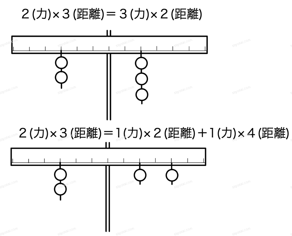 TOP > 一般教養 一覧 [教採スタンダード] > 道具を使った仕事 参考書モード 講義モード(準備中) ◯てこの原理 つり合いの条件: \( \displaystyle \text{力点にかける力} \times \text{支点から力点までの距離} \) \( \displaystyle = \text{作用点にはたらく力} \times \text{支点から作用点までの距離} \) 三要素: ①支点:てこを支える点②力点:力を加える点③作用点:てこが力をはたらかせる点 ◯滑車の比較 (例)同じ物体を、同じ高さだけ持ち上げる状況 解説ー準備中 (演習問題ー準備中) この記事は役に立ちましたか? 間違い/不具合かな?と思ったらこちらへ ✉️ 修正を提案する 2025年11月22日 author
