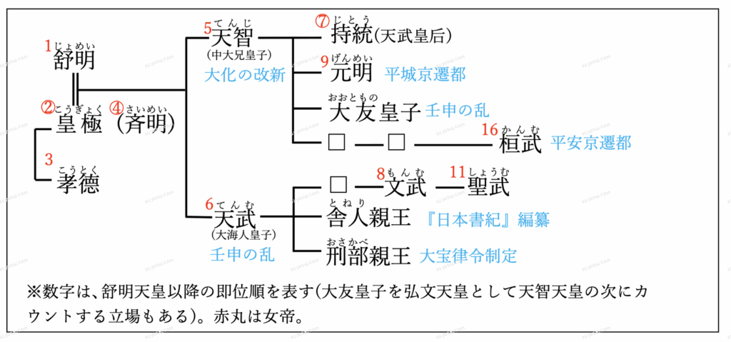 | 原因:天智天皇の後継者争い 人物:大友皇子vs大海人皇子 結果:勝利した大海人皇子が天武天皇として即位 |