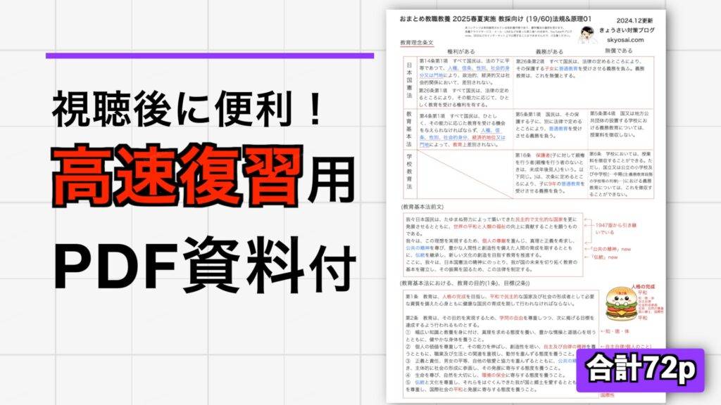 きょうさい対策ブログ(skyosai.com)が作成する、教員採用試験(教採)の教職教養向け、動画学習コンテンツの紹介です。